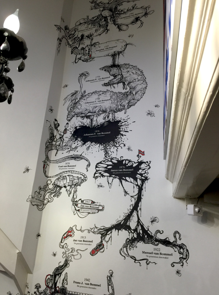 Im Laufe der Jahre hat Kevin für uns eine ganze Reihe an Monstern für alle möglichen Aktionen gezeichnet. Das Besondere sind wohl die vier Stammbäume, die er illustriert hat. Stammbäume sind meistens eher langweilig, aber für unser Unternehmen ist es manchmal gut, einen Stammbaum zu haben, der zeigt, dass wir schon seit neun Generationen Schuhe herstellen. Mit Kevins Designs sind diese Stammbäume nicht nur informativ, sondern auch noch cool.“