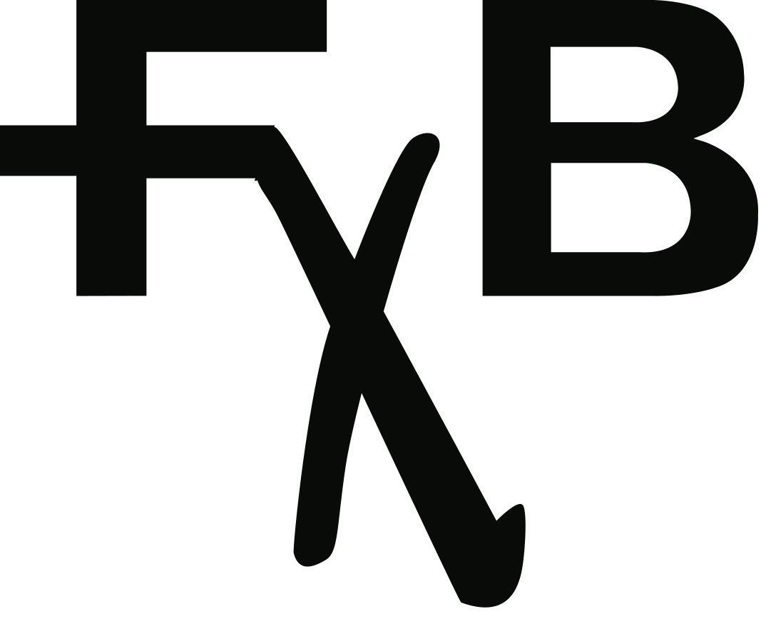 (Bild unten: Ein Logo von Floris van Bommel, in das das Witwenkreuz eingearbeitet wurde. Die Spitze des Kreuzes bildet dabei den Buchstaben v in der Abkürzung FvB. 2016.)