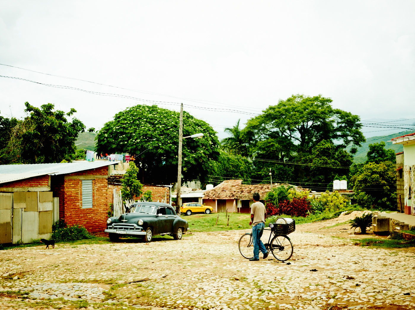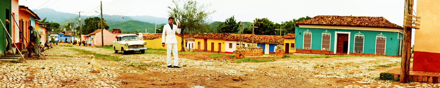 Wir sind vier Tage in Kuba für etwa acht Fotos. Man sollte meinen, das sollte kein Problem sein. Aber es ist trotzdem spannend. Normalerweise würde man bei einem solchen Dreh einen Location Scout vorausschicken, damit man nach Ankunft mit dem gesamten Produktionsteam (Stylist, Fotograf, Fotoassistent, Kameramann, Guide, Fahrer) sofort loslegen kann. So gehen wir aber nicht vor. Wir improvisieren immer. Das bringt uns oft Gutes, manchmal aber eben auch nicht. Außerhalb Havannas erweist sich Kuba, was die Natur und Landschaft angehen, als überraschend öde. Für das spektakuläre Panoramafoto, nachdem wir suchen, wird es ganz schön schwierig. Am letzten Tag, als der Himmel mit bedrohlich wirkenden Regenwolken verhangen war, gelang es uns aber gerade noch, das ersehnte Foto zu machen.
