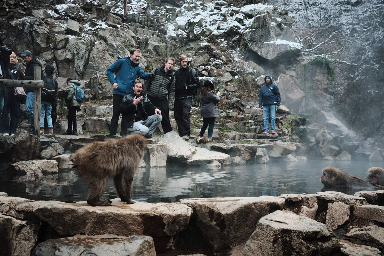 Japaner sind nicht nur gesetzestreu, sie sind auch sehr nett. So richtig richtig nett. Als ich in unserem Hotel in der Nähe von Nagano gerade aus dem Aufzug steigen will, wartet die Dame von der Rezeption darauf, in den Lift zu treten. Sie sieht mich da stehen, erschrickt, verbeugt sich kurz und verzieht dann das Gesicht zu einem Lächeln, als ob sie nach einer Portion verdorbener Austern auf der Toilette sitzen würde. Es ist wirklich eine Art schwere „Lachgeburt“. Sie presst die Lippen so dermaßen aufeinander, dass der Gynäkologe, wäre es keine Lachgeburt, sondern eine echte Geburt gewesen, wahrscheinlich nach einer Zange gesucht hätte. Ich bin beeindruckt von ihrer Hingabe und erwidere ihre Freundlichkeit mit einem traditionell zurückhaltenden niederländischen Lächeln.