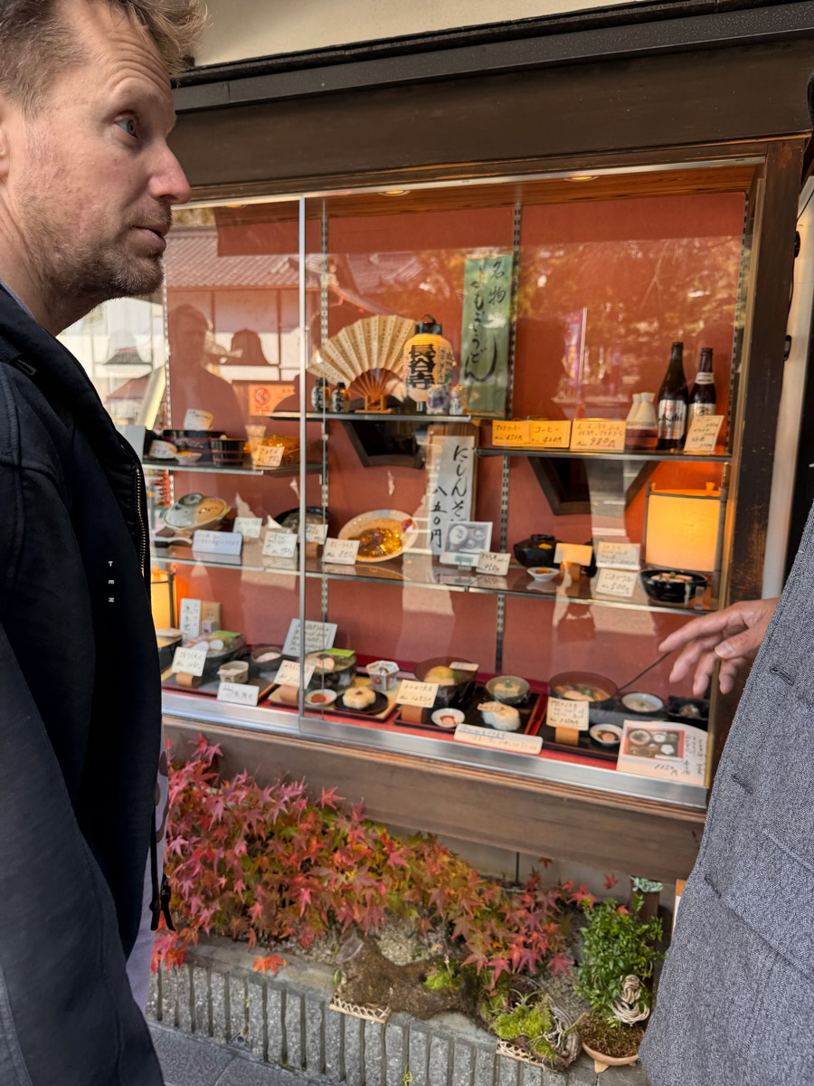 Es gibt kein Volk, das so gesetzestreu ist wie die Japaner. Während in den Niederlanden nicht einmal die größten Absperrungen jemanden abhalten, reicht in Japan ein kleines Stück Schnur, um alle dazu zu bringen, große Umwege zu laufen. Wir passen uns an, aber der Druck, ein gutes Panoramafoto zu schießen, wird immer größer. Japan entpuppt sich als weniger fotogen, als wir gehofft hatten. Entweder sind es langweilige Alltagsgebäude oder mega-touristische Tempel. Dazwischen haben wir nichts gefunden. In einem touristischen Teegarten müssen wir uns mit einer schönen Ecke mit zwei alten, roten, japanischen Ahornbäumen begnügen. Zwischen Touristenschwärmen mache ich etwas, das unser Reiseführer noch nie gesehen hat. Wahrscheinlich weiß er gar nicht, dass es überhaupt möglich ist... Ich steige über eine Schnur, die 30 cm über dem Boden am Weg entlangführt, und setze mich auf einen Felsen in dem kleinen Garten. Unser Reiseführer wird so nervös, dass ich mir sofort wie ein Verbrecher vorkomme. Am Ende wird dies das Panorama sein, das wir für unsere Einladungen und die Messewand verwenden. Die Schamesröte unseres Reiseführers war zumindest nicht umsonst.