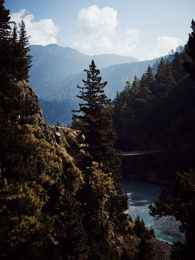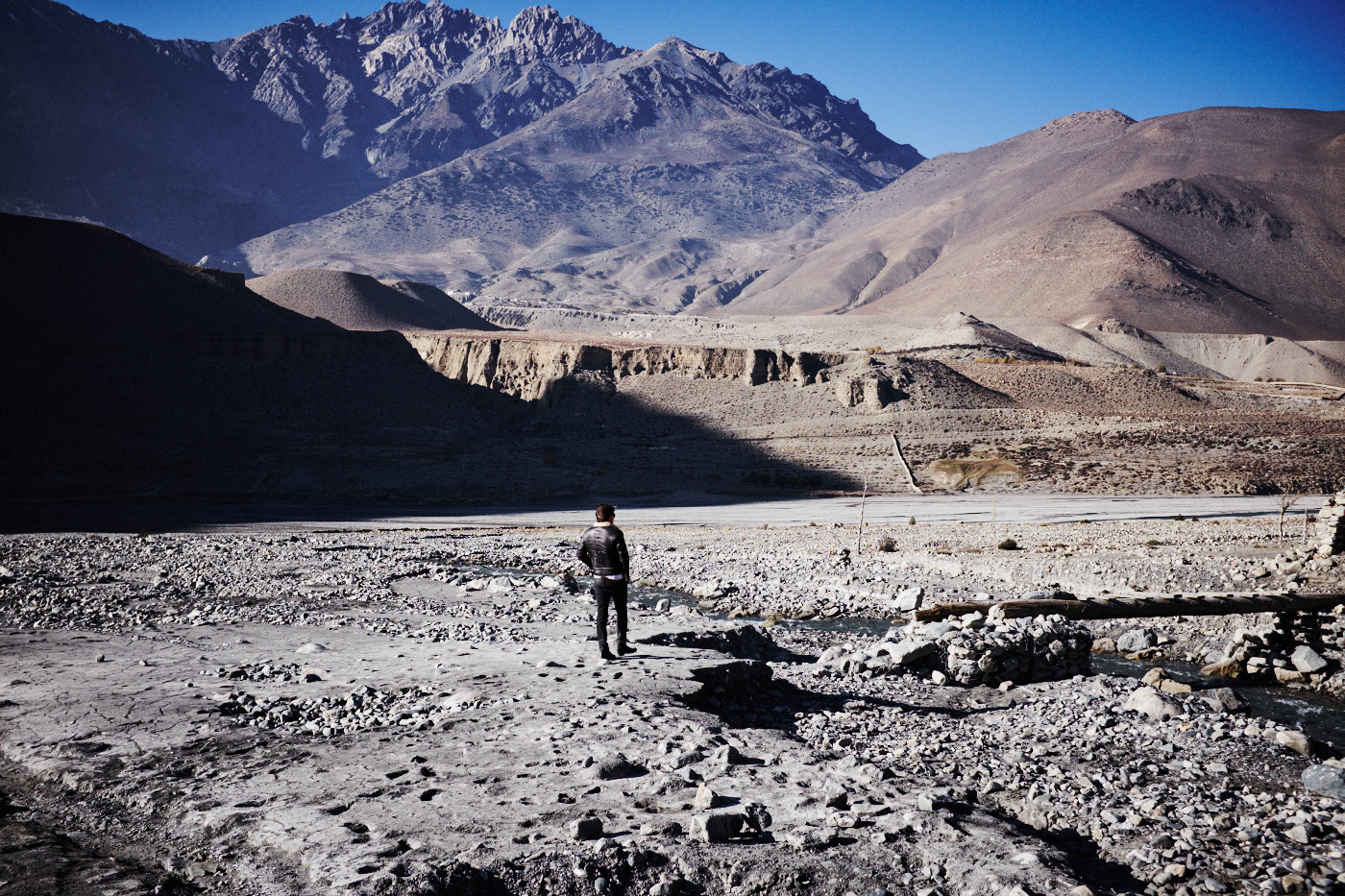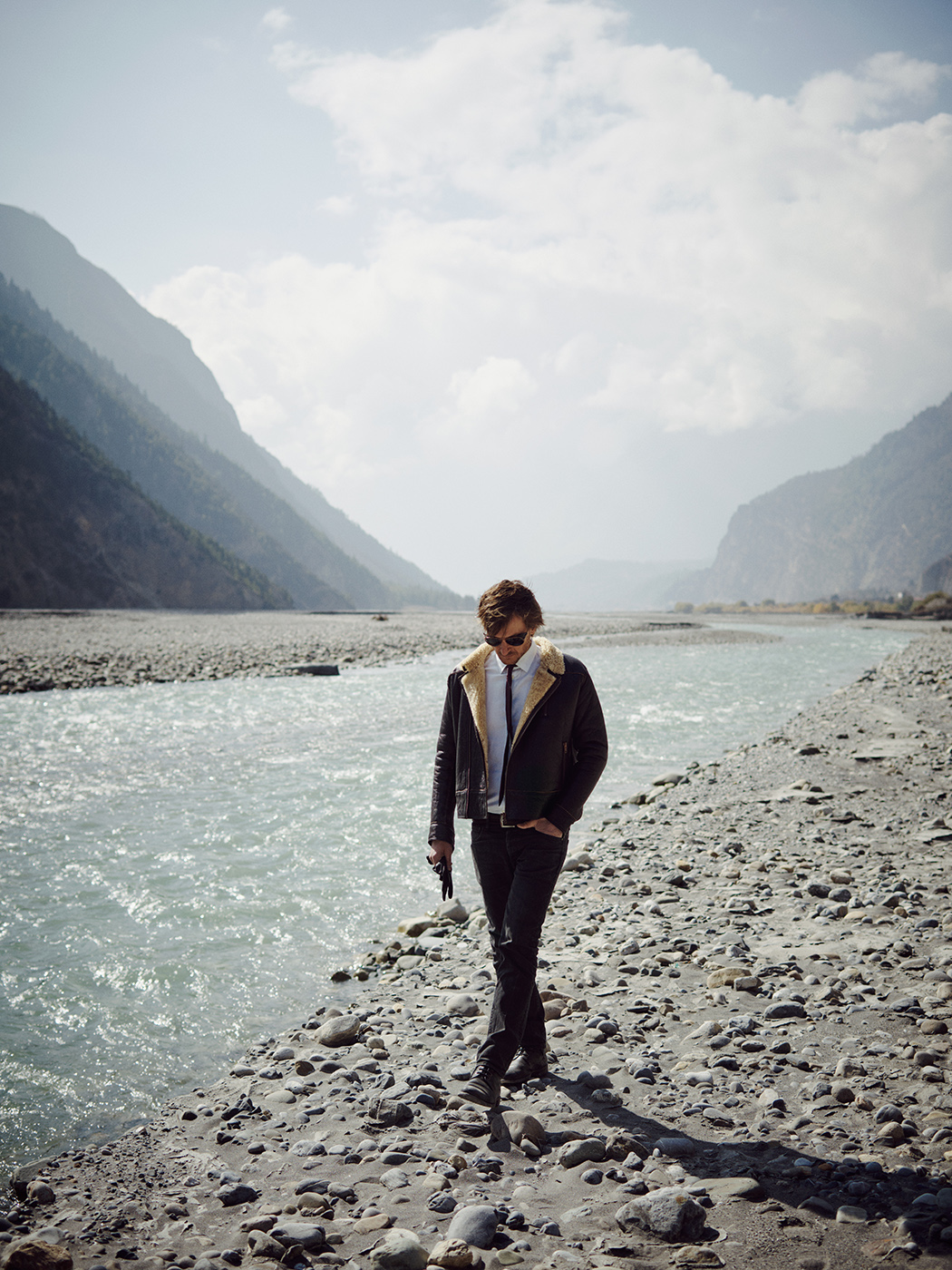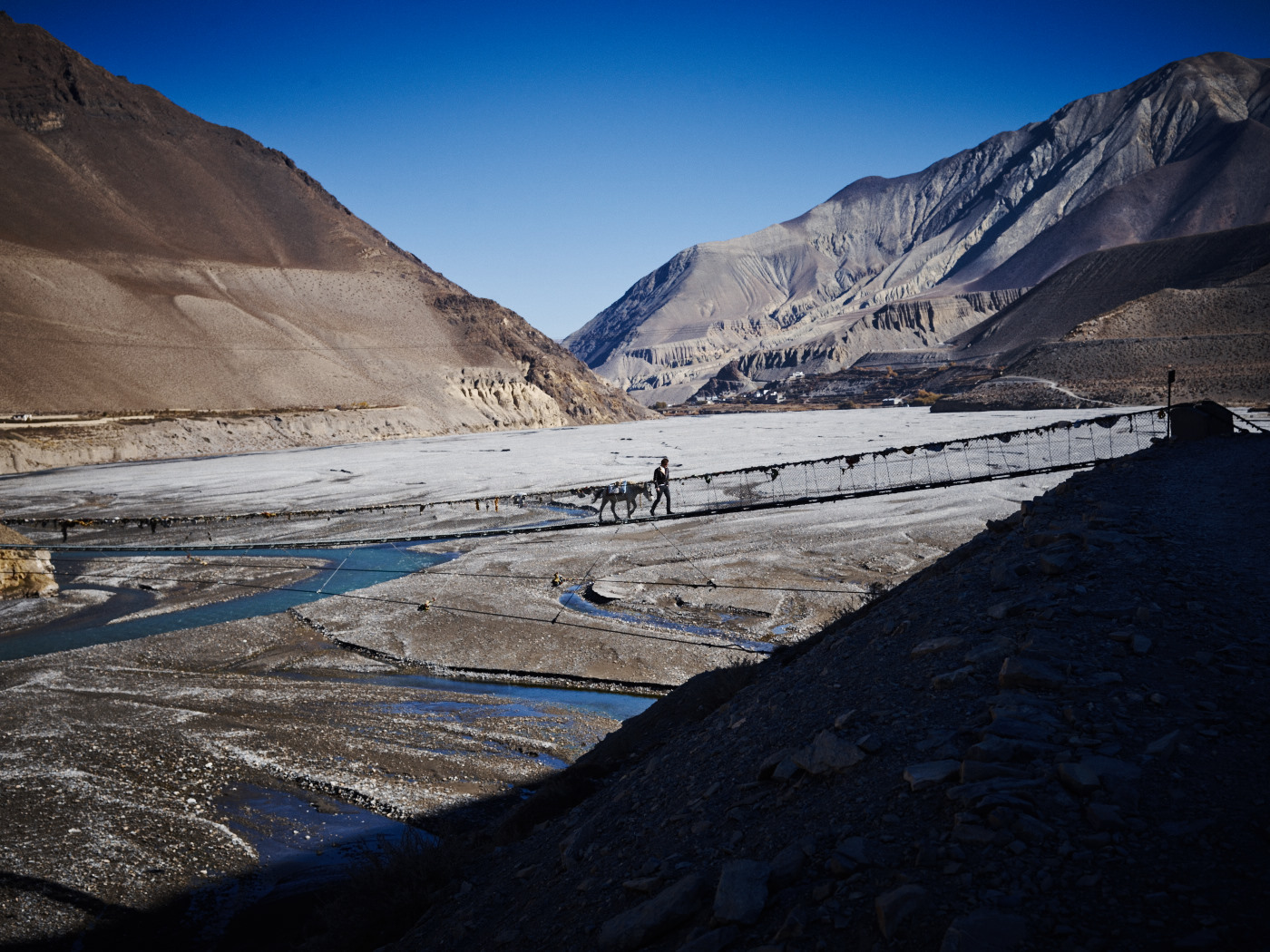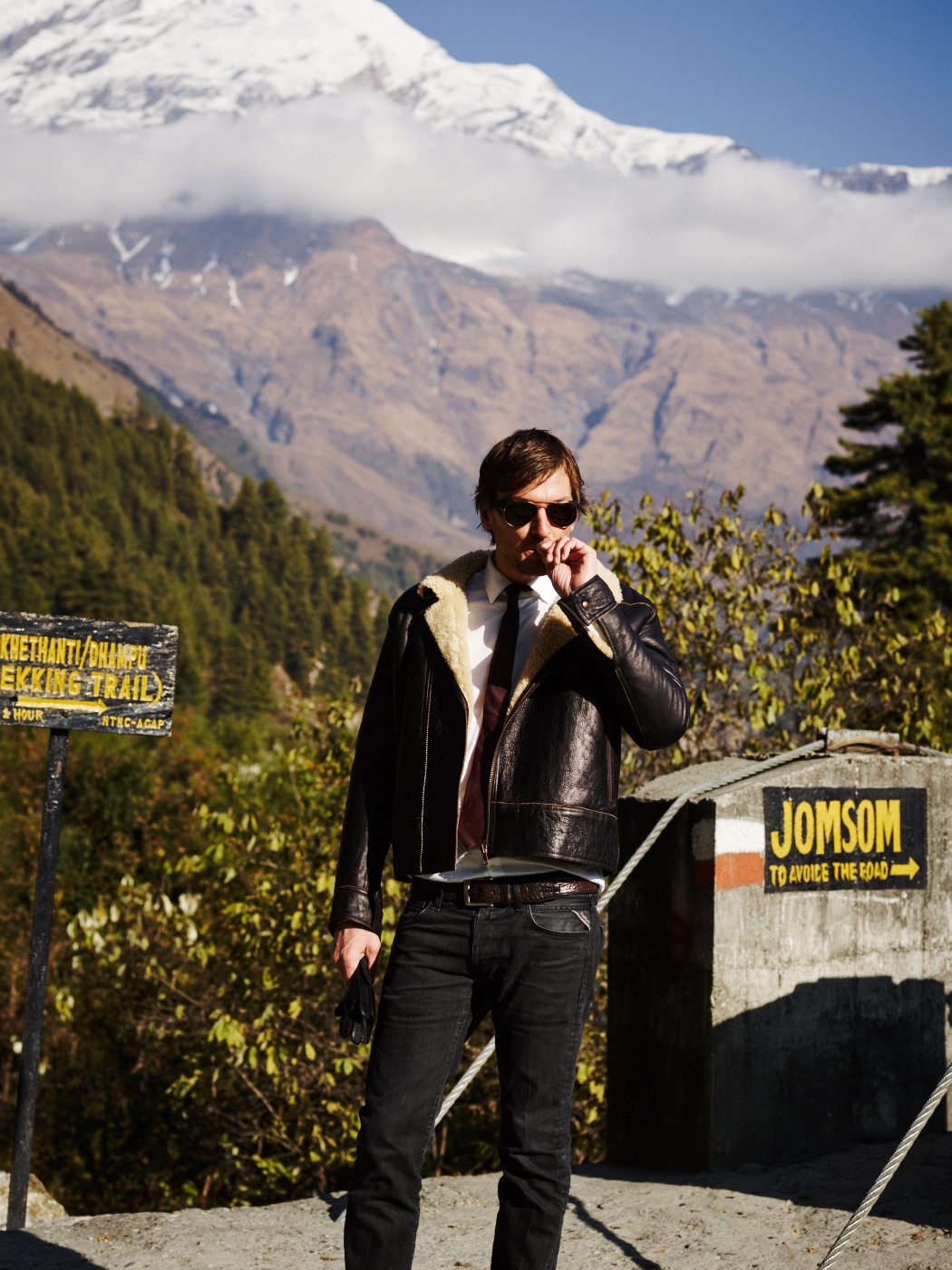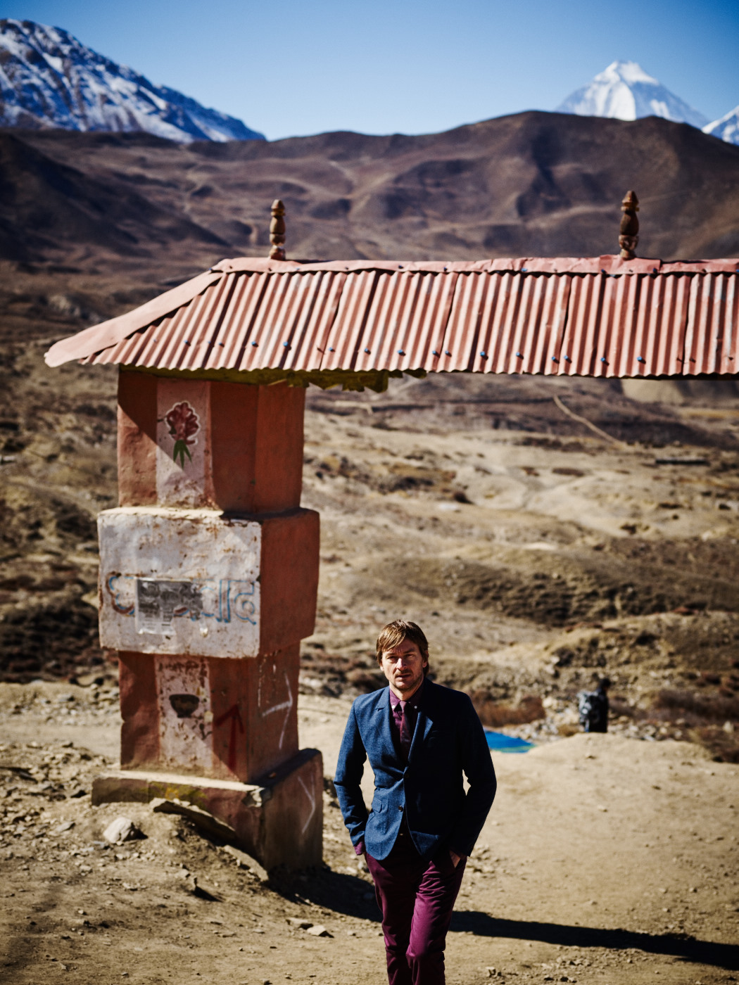 „Das Verrückteste war, als ich für den Film allein mit einem Pferd an einem Seil über eine schmale, 100 Meter lange Hangebrücke laufen musste. Ich war erstaunt, dass das überhaupt ging, mit einem Pferd über so eine Hängebrücke zu gehen, aber das ist dort ganz normal. Überhaupt kein Problem. Der Boden der Brücke bestand aus einer Art Drahtgeflecht. Ich konnte direkt hindurchsehen, direkt nach unten, wo ein tosender Fluss herunterströmte. Die Seitenwände bestanden aus einer Art Maschendraht, der etwa einen Meter hoch war. Der Hinweg über die Brücke ging noch ganz gut, da half der Besitzer des Pferdes noch mit, in Gang zu kommen. Aber als ich auf der anderen Seite der Schlucht ankam, mussten wir wieder zurückgehen. Ich stand also alleine mit dem Gaul da. Der Rest der Crew und der Guide waren nur noch kleine Flecken auf der anderen Seite der Schlucht, weit außer Hörweite. Aber das Pferd wollte nicht mehr zurück. „Vergiss es“, dachte es sich wahrscheinlich, „wackelige Hängebrücke, tiefe Schlucht vor mir – ohne mich.“ Aber ich musste ja zurück. Für den Film! Denn dieser Film sorgt dafür, dass wir Schuhe verkaufen, also mussten wir einfach zurück. Und plötzlich steht man da als Tilburger mitten im Himalaya in seinem schicken Anzug am Rande einer 50 Meter tiefen Schlucht mit einem reißenden Wildwasserfluss darunter und zieht mit seinem ganzen Gewicht an den Zügeln eines Pferdes. Das Tier sperrte sich, wie man es nur in Cartoons sieht. Während ich wie ein Idiot zog, standen Furys Beine in der entgegengesetzten Richtung schräg im Sand. Es ist ja nicht so, dass ich in Panik geraten wäre oder so, aber ich habe mir schon gedacht: „Verdammt nochmal, ich werde hierbei noch sterben... aber ich muss auch Schuhe... verkaufen... Schuhe!!!“ Nachdem ich eine Minute lang herumgezogen habe, hatte ich eine Idee. Das Seil dieses Sturkopfes war etwa 2 m lang. Ich hab mich soweit ich konnte auf die Brücke gestellt. Und dann stand ich da und habe ausgestrahlt: „Das musst du schon selbst regeln, ich gehe dann jetzt, sieh selber zu, was du machst.“ Und dann, nach einem weiteren kleinen Ruck und einem 'tssk tssk huu', setzte sich das Pferd endlich in Bewegung.“