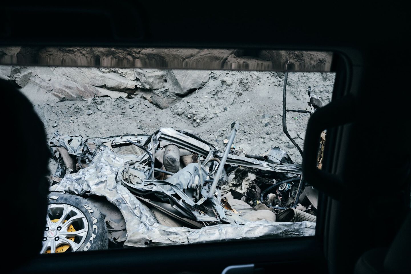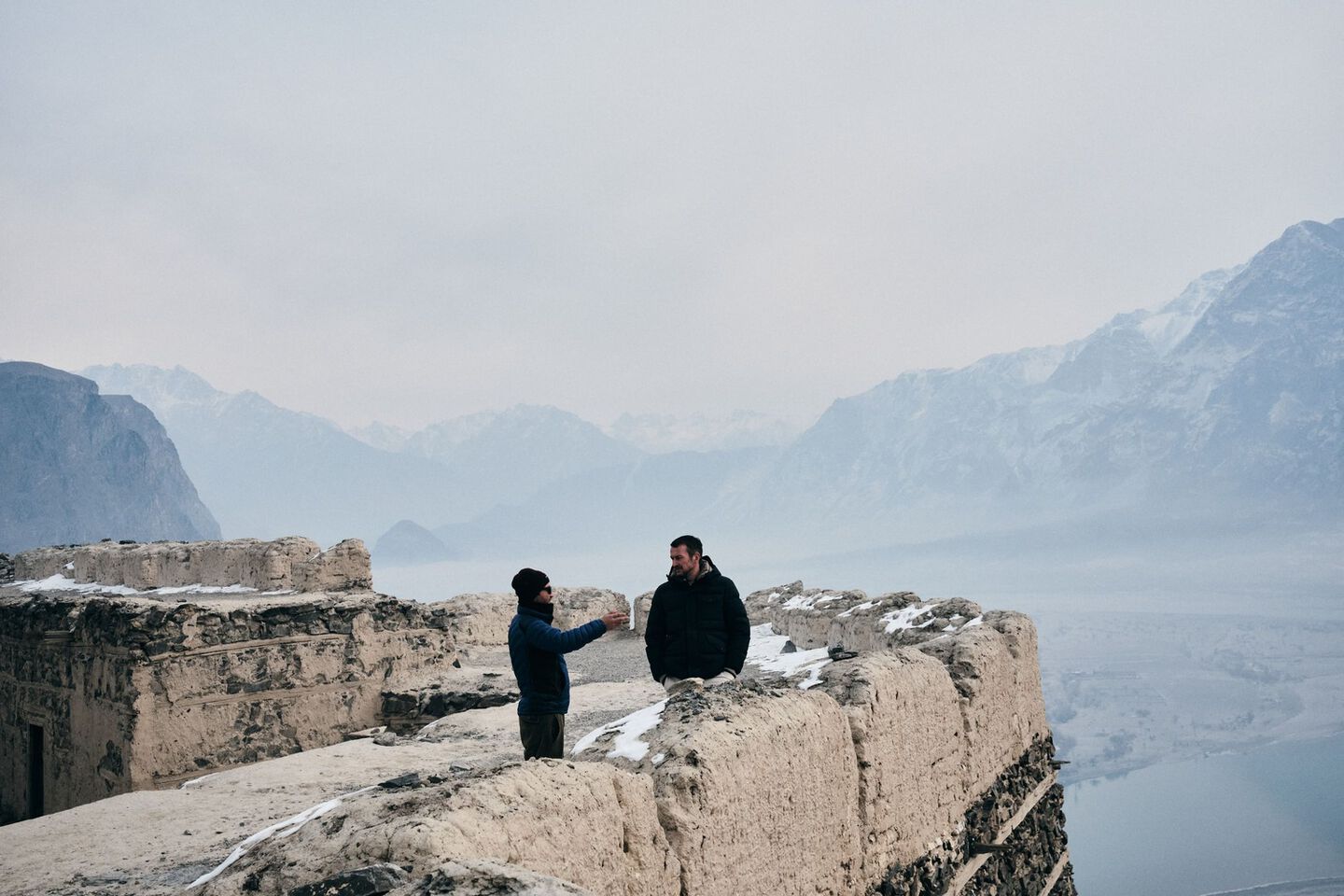 Das Warten passt nicht in unseren Zeitplan. Das Reisebüro arrangiert einen Van. Wir begeben uns auf eine 14-stündige Fahrt, die am Ende 19 Stunden dauert, direkt durch den Himalaya und durch rot eingefärbtes Gebiet. Sollten wir unterwegs eine Panne haben, brauchen wir die Botschaft gar nicht erst anzurufen. Die wird uns hier sowieso nicht helfen. Durch die Region Kohistan werden wir von einer bewaffneten Eskorte begleitet: ein Polizeiauto vor uns, zwei Polizisten hinten drin. Sie schauen uns streng an, ihre Maschinengewehre im Anschlag. Unser Reiseführer zuckt mit den Schultern. „Reine Formalität.“