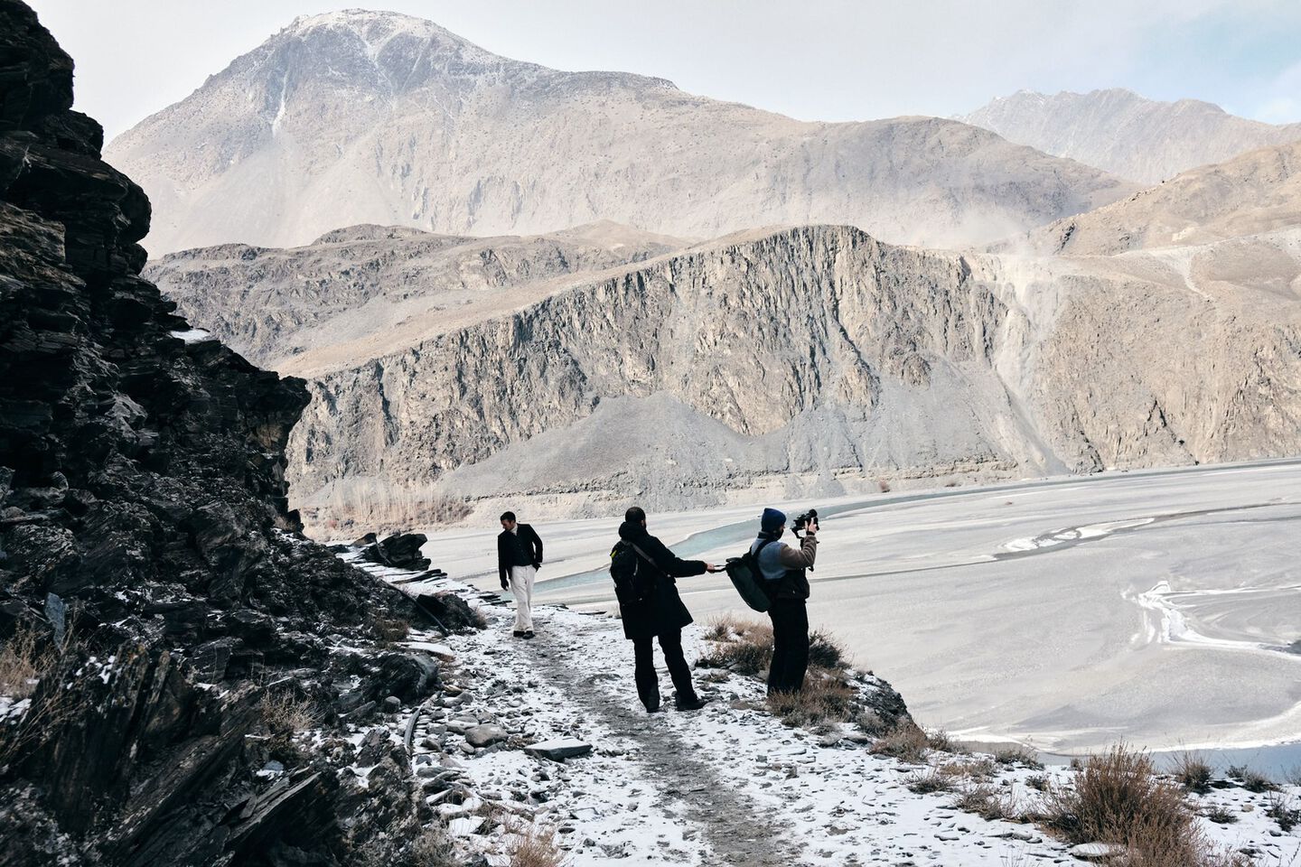 Ab 11 Uhr wird der Flug mehrmals verschoben. Am Ende stellt sich um zwei Uhr nachmittags heraus, dass er gestrichen wurde. Draußen stehen Männer mit traditionellen pakistanischen Kopfbedeckungen, die nicht überrascht sind. Einer von ihnen rät uns, in zwei Tagen einen Flug nach Skardu zu nehmen. Von dort aus ist es eine vierstündige Fahrt nach Gilgit. „Dann seid ihr also übermorgen da“, sagt er und wackelt dabei mit dem Kopf. Ich dachte, das tun nur Inder, aber anscheinend macht man das hier auch.