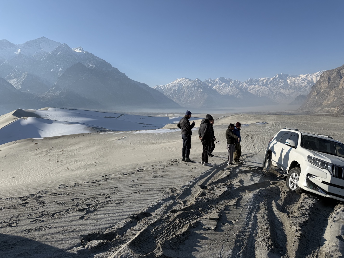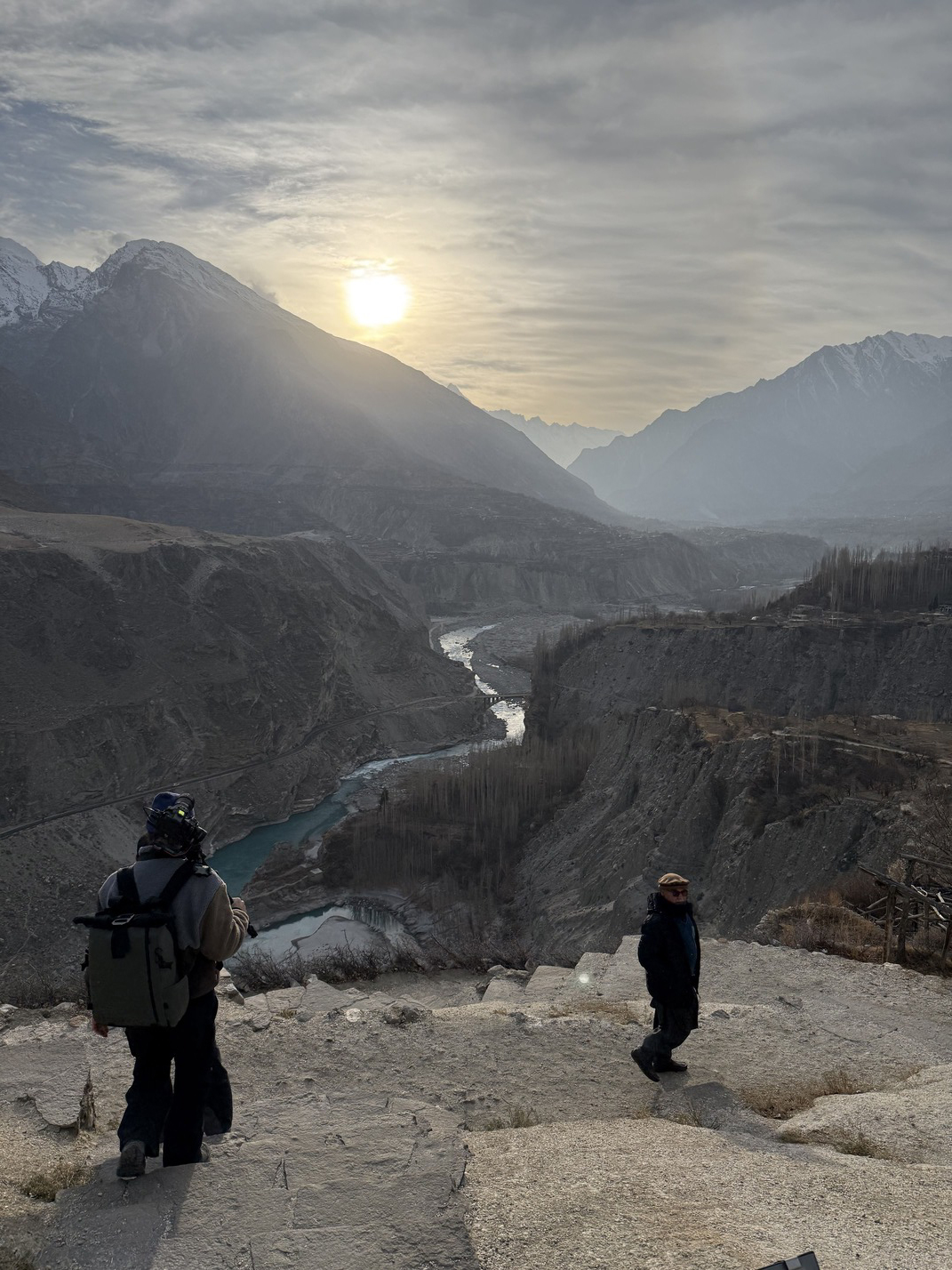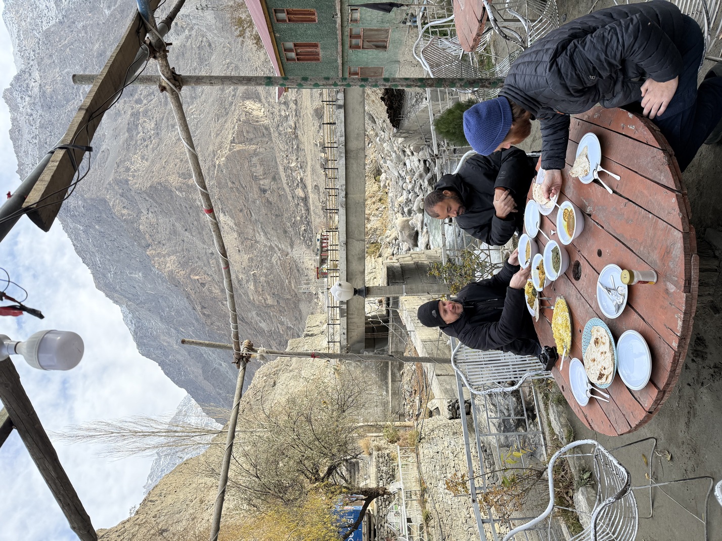 Wir fahren nachts über enge Bergpässe mit schwindelerregenden Steilhängen. Zwei Straßensperren aufgrund von Bauarbeiten kosten uns weitere anderthalb Stunden. Nach zwei schlaflosen Nächten kommen wir endlich im Hunza-Tal an.