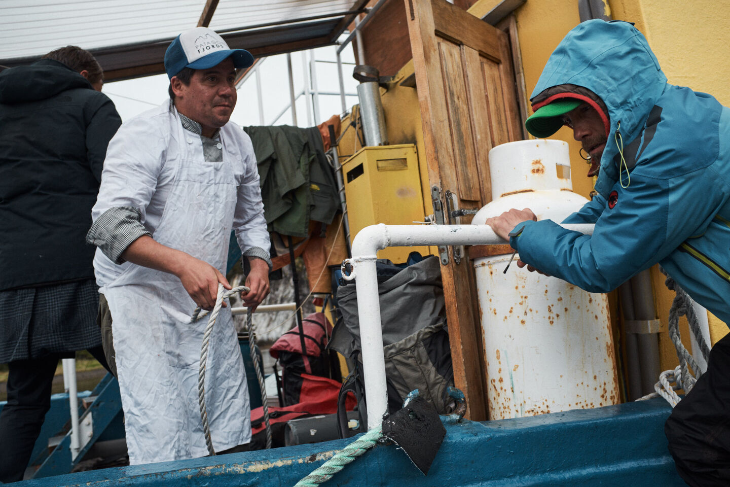 Als erste Foto-Location hatten wir uns einen Gletscher mitten in den Fjorden von Chile ausgesucht. Um dorthin zu gelangen, mussten wir 9 Stunden von Puerto Natales in die Wildnis fahren. Zuerst mussten wir ein Stück zu Fuß gehen, dann auf ein Boot, dann ein Stück mit dem Auto fahren, dann auf ein zweites Boot, eine erste Wanderung machen, noch ein Boot nehmen, eine zweite Wanderung machen und dann ein letztes Boot nehmen, das uns am Basislagerboot absetzte.