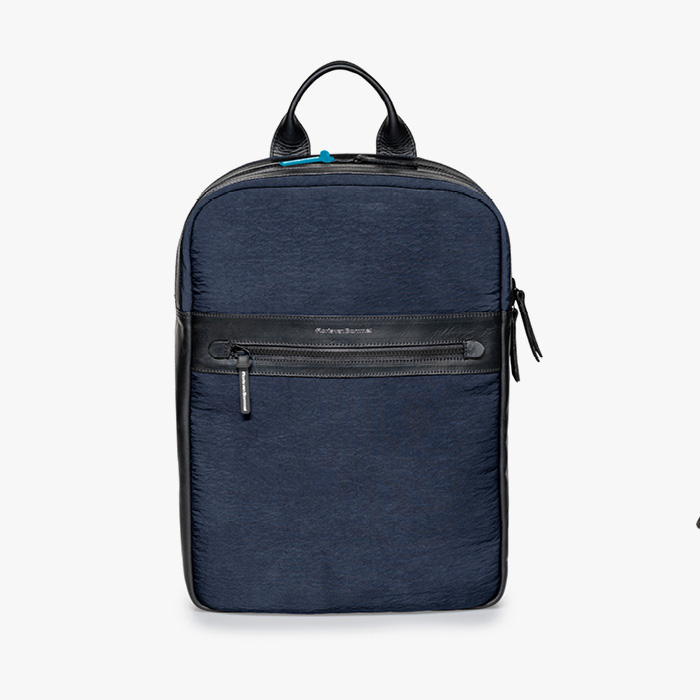 Ein stilvoller Rucksack, der sich sowohl für die Freizeit als auch für die Arbeit eignet. Dank der gepolsterten Griffe und des atmungsaktiven Meshs auf der Rückseite bietet der Rucksack optimalen Tragekomfort. Auf der Rückseite ist der Rucksack mit einem schmalen Lederriemen versehen, mit dem er sich leicht über den Griff eines Rollkoffers schieben lässt.