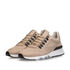 The sole of this new Zager (Sawyer), which is voluminous at the heel, tapers towards the forefoot, giving the shoe a speedy, sporty look. The sole is made of grey and very light EVA material. The durable TPU outsole is adorned with the Floris van Bommel signature zig-zag line. The sneaker is finished with premium leather lining and a removable footbed. The model features a hiking boot lacing and a double tongue. Instead of eyelets, the laces run through sporty hooks. This version is made of beige nubuck leather.